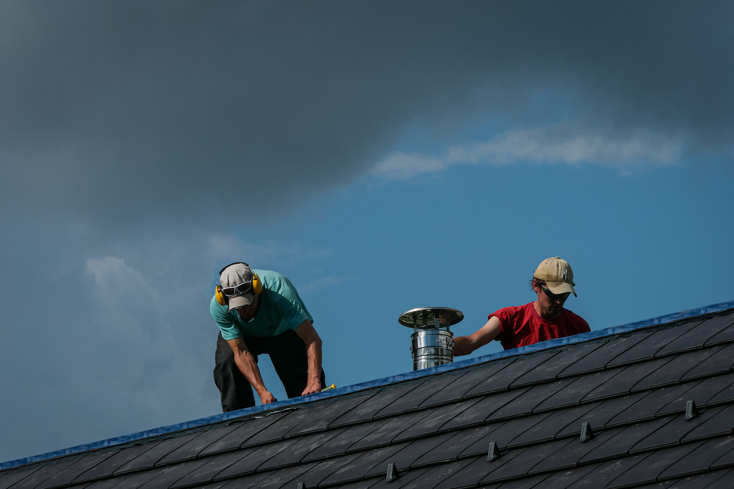 Pour des raisons de durabilité, nous préférons proposer des tuiles terre cuite. Celles-ci sont souvent quasiment plates dans nos régions. Leur pose est évidemment plus longue et plus technique que celle du bac acier, et renchérie encore lorsque la toiture présente de nombreux "accidents de toiture" (velux, cheminées, mais aussi arêtiers, noues etc.). Elles présentent cependant un aspect évidemment très différent pour l’identité de la maison, et sont moins bruyantes (pluie) que le bac acier. Cette différence est relativement amoindrie dans le cas des toitures paille, qui sont très épaisses et limitent la propagation de bruits à l’intérieur.