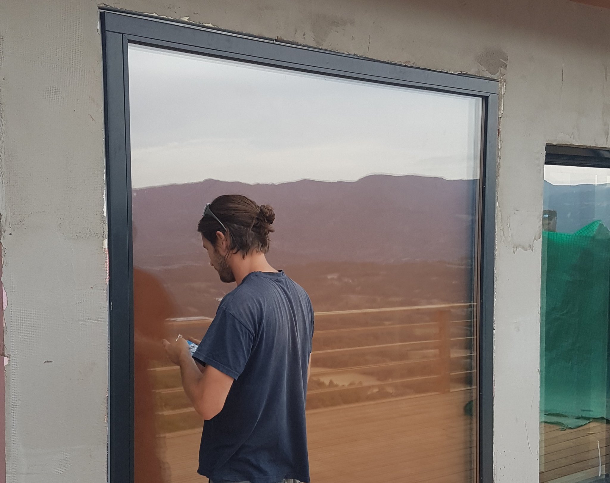 La partie haute de la réservation permet d’installer une fenêtre classique, tandis que la partie basse, côté extérieur et devant le mur de terre (éventuellement peint en noir), accueille une menuiserie fixe qui va jouer le rôle de "serre". Grâce à une étanchéité à l’air la plus parfaite possible, la terre crue stocke toutes les calories de cette micro-serre, et les libère côté intérieur quelques heures plus tard.